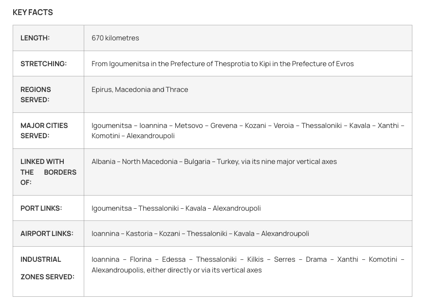 “Egnatia Odos” is a Motorway that crosses Northern Greece, from East to West, starting from the Port of Igoumenitsa, which connects Greece to Italy, and ending at the Greek-Turkish borders.